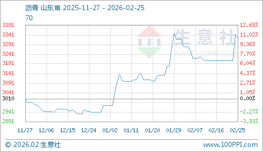 02月25日沥青3323.33元/吨 5天上涨3.53%
