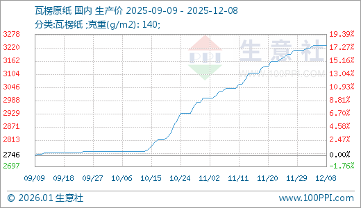 据生意社监测,瓦楞纸12月08日最新价格3230.00元/吨,最近60天上涨16.86%。
