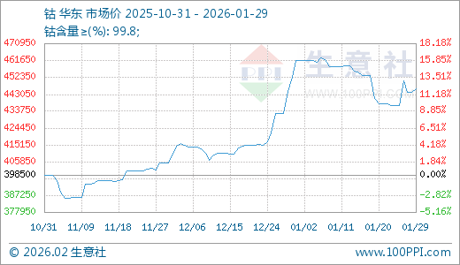 01月29日钴446100.00元/吨 60天上涨10.15%