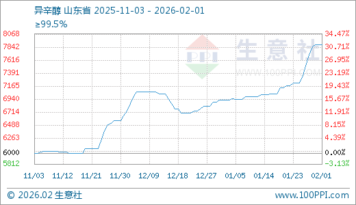 02月01日异辛醇7880.00元/吨 5天上涨4.79%