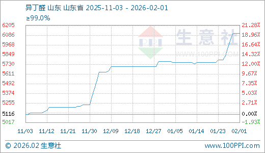02月01日异丁醛6106.67元/吨 5天上涨3.10%