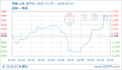 02月01日丙烯6404.33元/吨 30天上涨12.01%