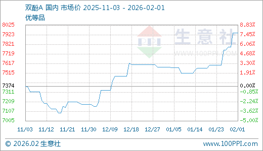 02月01日双酚A价格7940.00元/吨 60天上涨10.89%