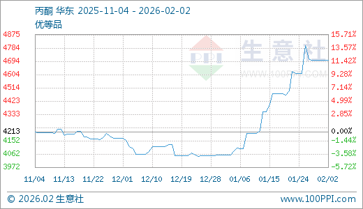 02月02日丙酮4700.00元/吨 30天上涨15.83%