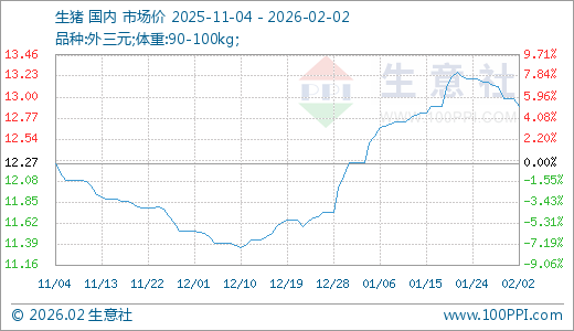 02月02日生猪12.90元/公斤 60天上涨12.66%