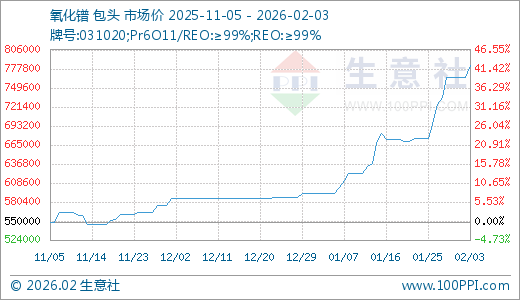 02月03日氧化镨782500.00万元/吨 10天上涨15.93%