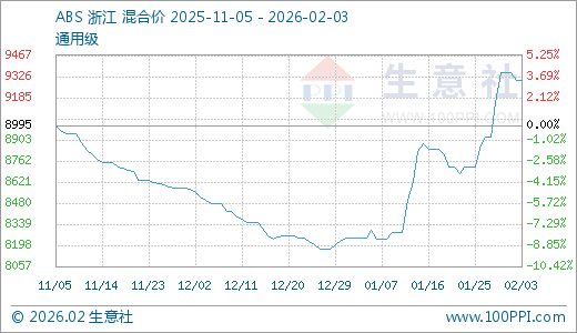 02月03日ABS价格9300.00元/吨 10天上涨6.59%