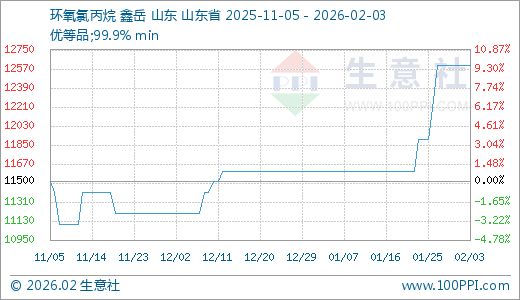 02月03日环氧氯丙烷12600.00元/吨 10天上涨5.88%