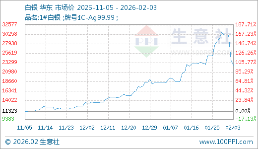 02月03日白银22571.67元/千克 30天上涨22.14%