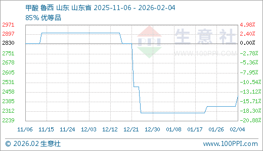 02月04日甲酸2430.00元/吨 5天上涨3.40%