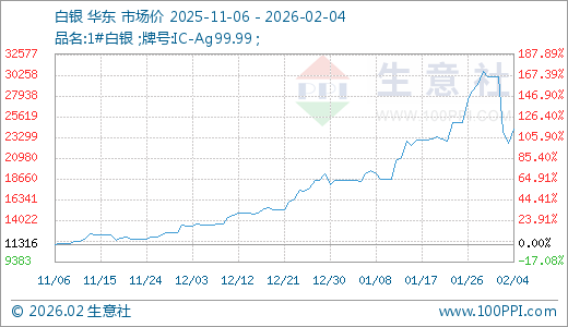 02月04日白银24179.67元/千克 30天上涨32.10%