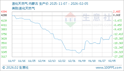 02月05日液化天然气3728.00元/吨 5天上涨3.27%
