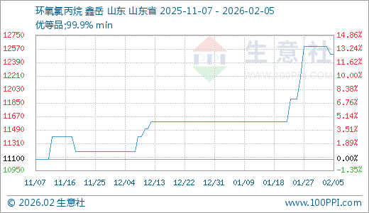 02月05日环氧氯丙烷12500.00元/吨 15天上涨7.76%