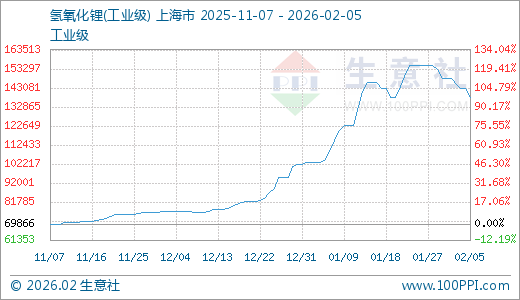 02月05日氢氧化锂138000.00元/吨 30天上涨25.64%