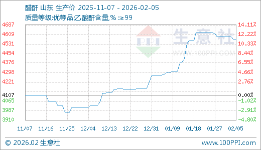 02月05日醋酐4565.00元/吨 60天上涨13.28%