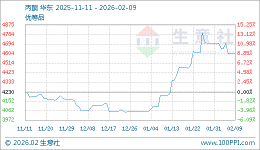 02月09日丙酮4600.00元/吨 60天上涨11.83%