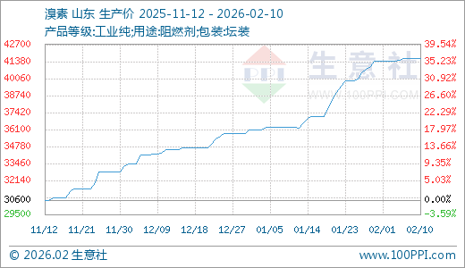 02月10日溴素41600.00元/吨 30天上涨14.73%