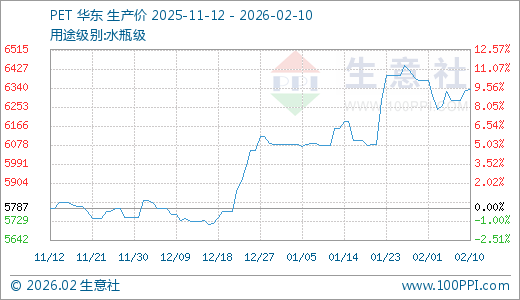 02月10日PET价格6335.00元/吨 60天上涨10.66%