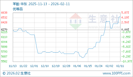 02月11日苯酚6550.00元/吨 30天上涨15.06%