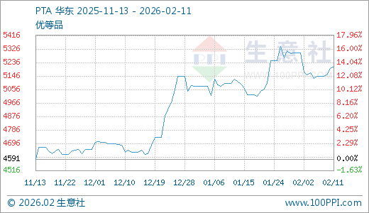 02月11日PTA价格5212.07元/吨 60天上涨12.34%