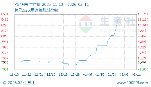 02月11日PS价格8400.00元/吨 60天上涨11.50%