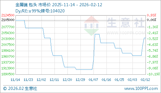 据生意社监测,金属镝02月12日最新价格2035000.00元/吨,最近5天上涨3.56%。