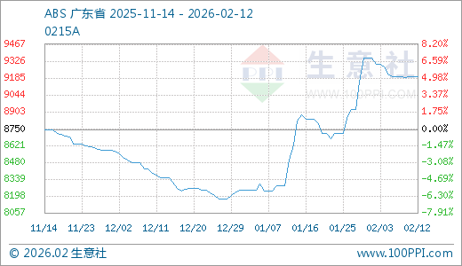 02月12日ABS价格9193.33元/吨 60天上涨10.10%