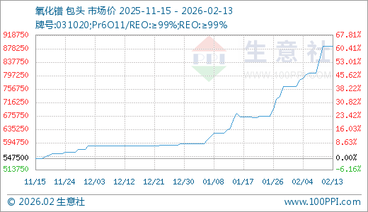 02月13日氧化镨885000.00万元/吨 5天上涨9.94%
