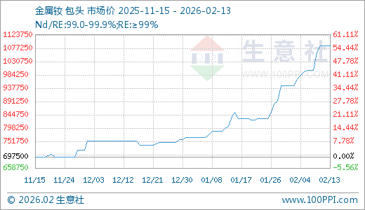 02月13日金属钕1085000.00元/吨 5天上涨8.50%