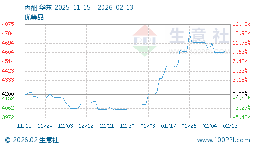 02月13日丙酮4650.00元/吨 60天上涨12.68%