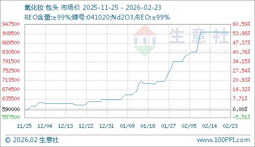 02月23日氧化钕915000.00元/吨 15天上涨9.91%