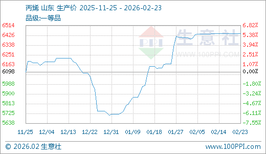 02月23日丙烯6441.00元/吨 60天上涨12.13%