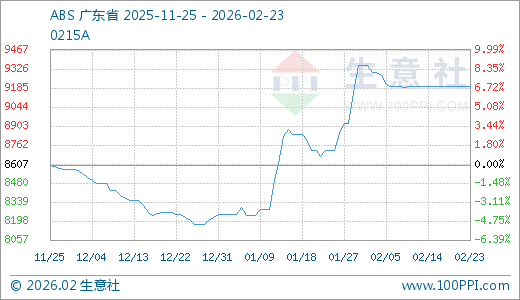 02月23日ABS价格9193.33元/吨 60天上涨12.11%