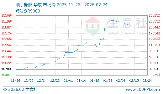 02月24日顺丁橡胶13170.00元/吨 60天上涨16.55%