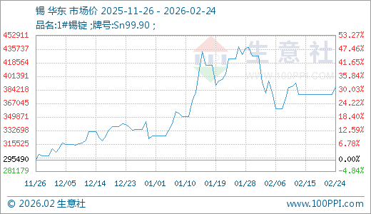 02月24日锡388000.00元/吨 60天上涨16.04%