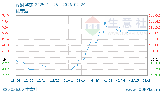02月24日丙酮4650.00元/吨 60天上涨14.74%