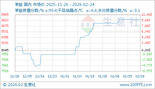 02月24日苯胺8845.00元/吨 60天上涨11.33%