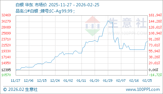 据生意社监测,白银02月25日最新价格23115.00元/千克,最近5天上涨15.84%,60天上涨25.45%。