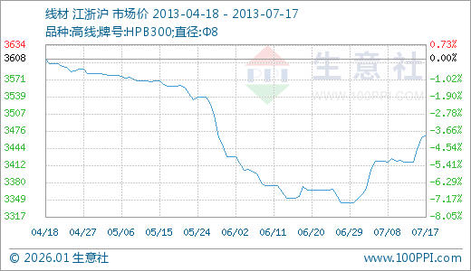 07月17日线材3468.00元/吨 20天上涨3.71%