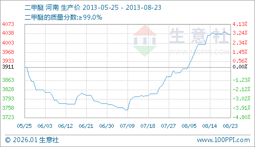 08月23日二甲醚4035.00元/吨 20天上涨3.26%