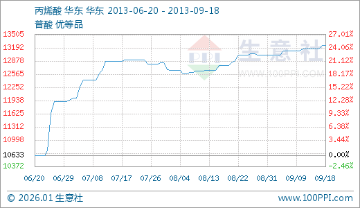09月18日丙烯酸13600.00元/吨 30天上涨3.55%