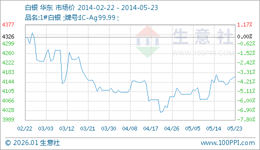 05月23日白银4168.33元/吨 30天上涨3.01%