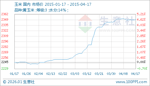 04月17日玉米2349.33元/吨 60天上涨4.32%