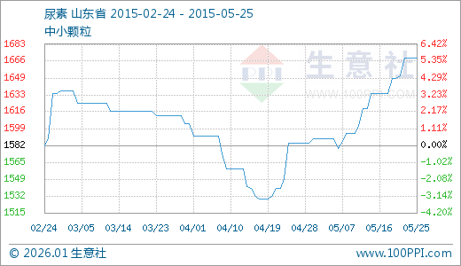05月25日尿素1669.50元/吨 20天上涨5.03%