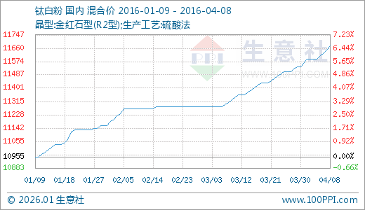 04月08日钛白粉11675.00元/吨 30天上涨3.09%
