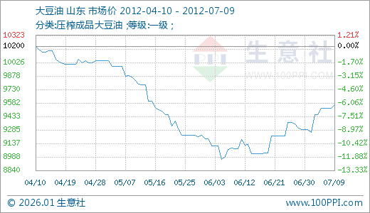07月09日大豆油9560.00元/吨 20天上涨5.87%