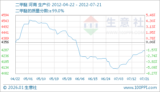 07月21日二甲醚4283.75元/吨 20天上涨3.82%