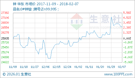 02月07日锌26632.50元/吨 60天上涨7.16%