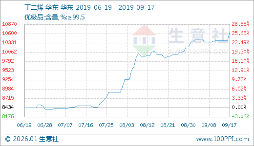09月17日丁二烯10645.56元/吨 60天上涨25.88%