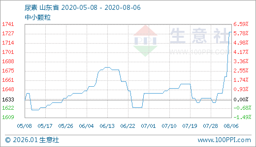 据生意社监测,尿素08月06日最新价格1730.00元/吨,最近5天上涨5.27%,10天上涨5.70%。